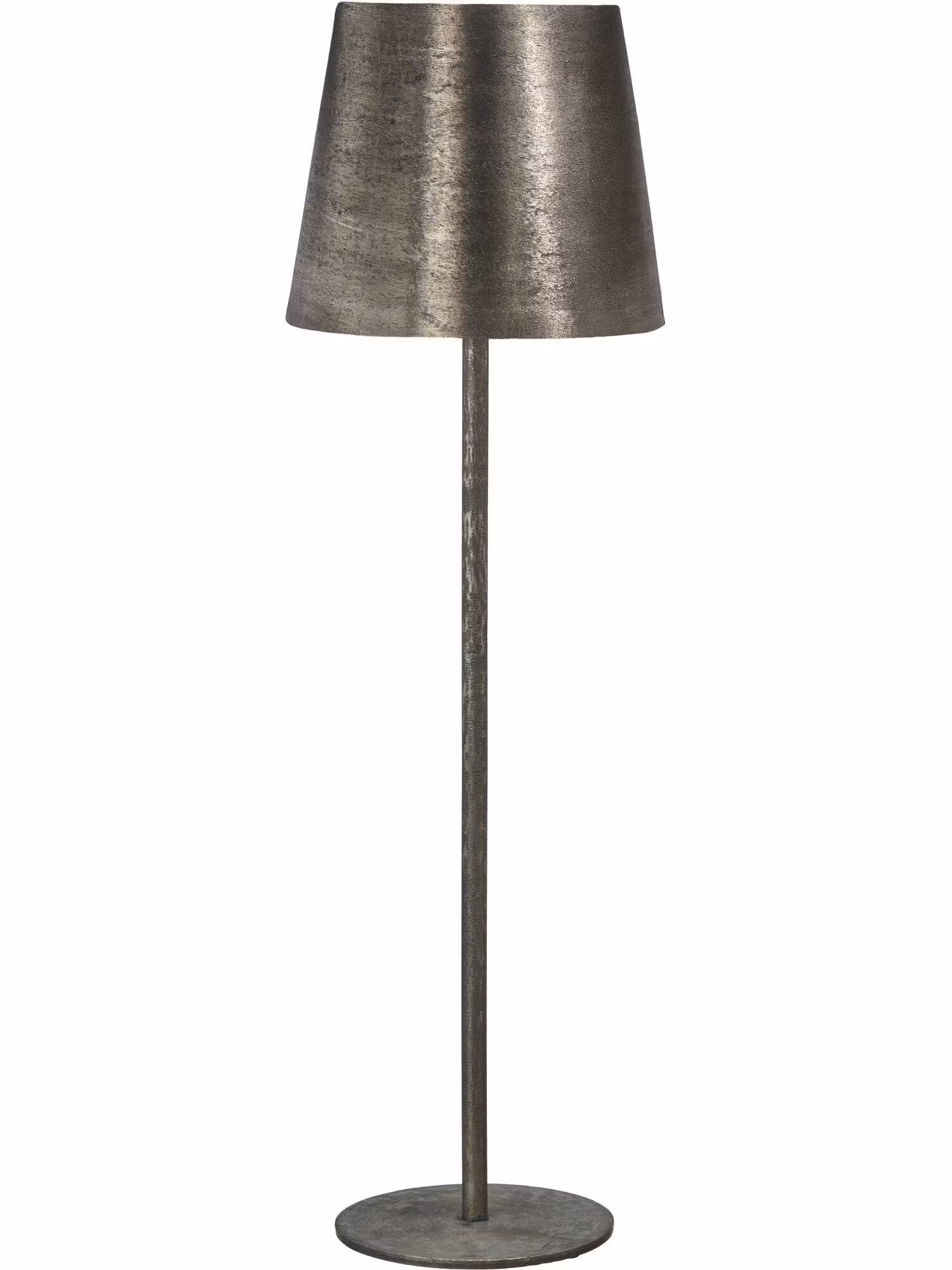 Base lampfot i metall med lampskärmen Mia i metall. Skärmen är 17 cm bred och 14,5 cm hög och har ett E27 ringfäste. Lampfoten är 45 cm hög och har en 2 m lång textilsladd med strömbrytare ca 30 cm från lampan. Total höjd blir 57 cm. E27 sockel. Max 40W. Ljuskälla ingår ej.