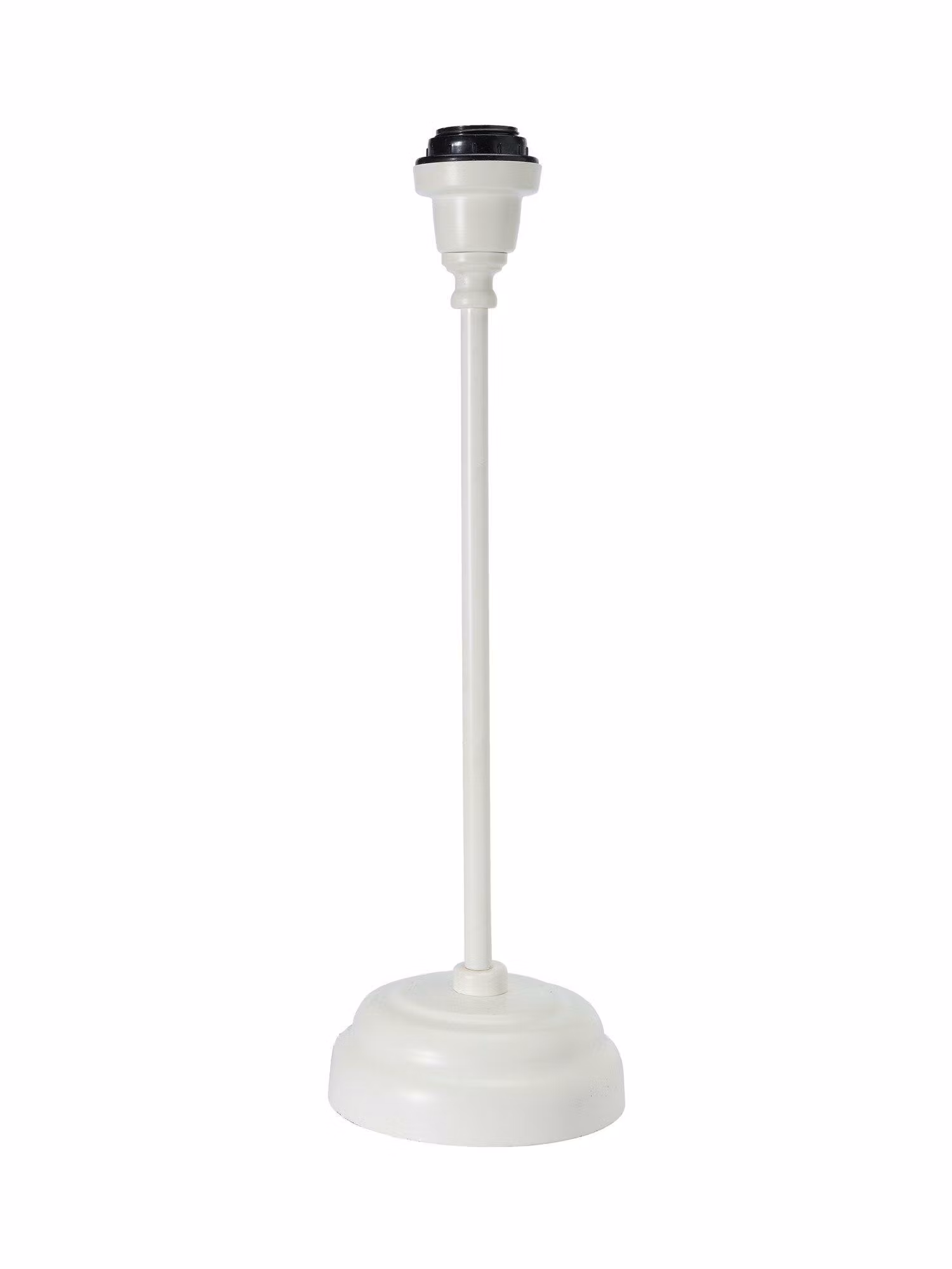Lampfot Lottie av metall. En enkel lampfot med en vacker formad rund fot och en textilkabel i linnefärg. Matt offwhite finish. 1,9m linnefärgad textilsladd med strömbrytare. Höjd 45cm, bredd 14cm och djup 14cm. E27 sockel. Max 40W. IP20. Matcha med skärm som är ca 20-25cm i diameter. Ljuskälla ingår ej.