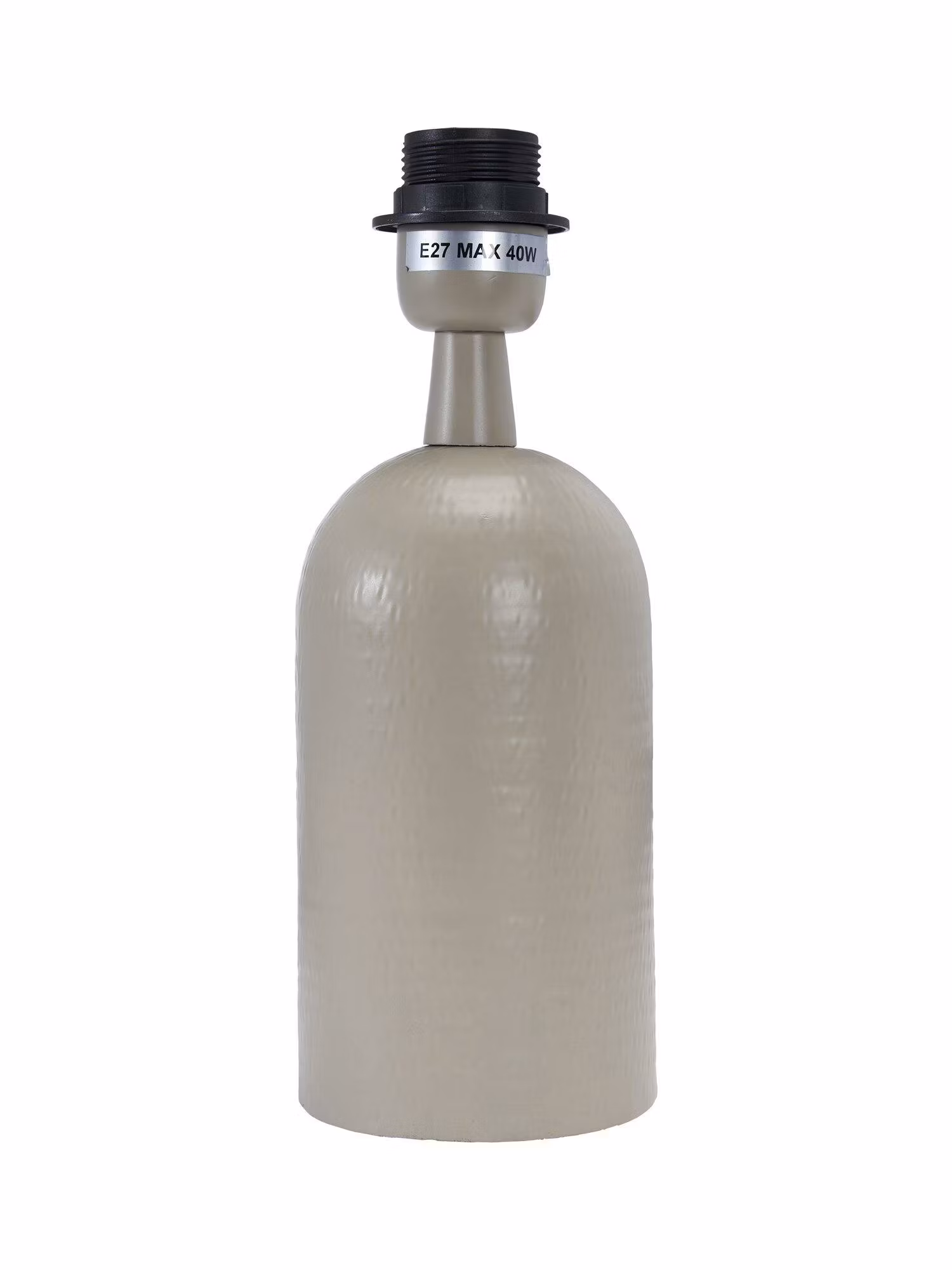 Lampfot Riley i hamrad metall med en blank beige finish. En lite mindre lampa som är lättplacerad och passar i många olika miljöer. Svart plast sladd 170cm med strömbrytare. E27 sockel. Matcha med skärm Empire 0825, Sara 220 eller Sofia 420 i valfritt tyg.
