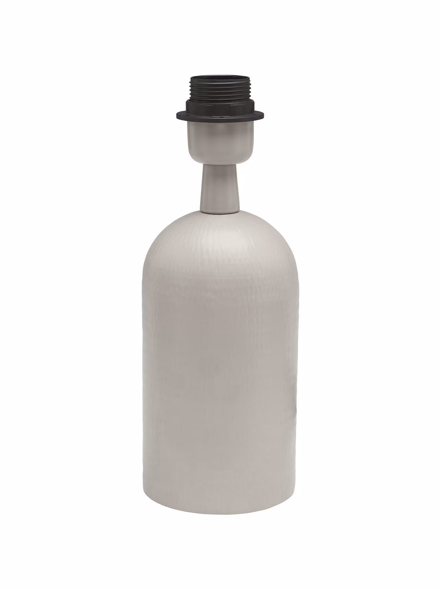 Lampfot Riley i hamrad metall. En lite mindre lättplacerad lampa som passar i många olika miljöer. Matt beige. Svart plast sladd 170cm med strömbrytare. E27 sockel. Matcha med skärm Empire 0825, Sara 220 eller Sofia 420 i valfritt tyg.