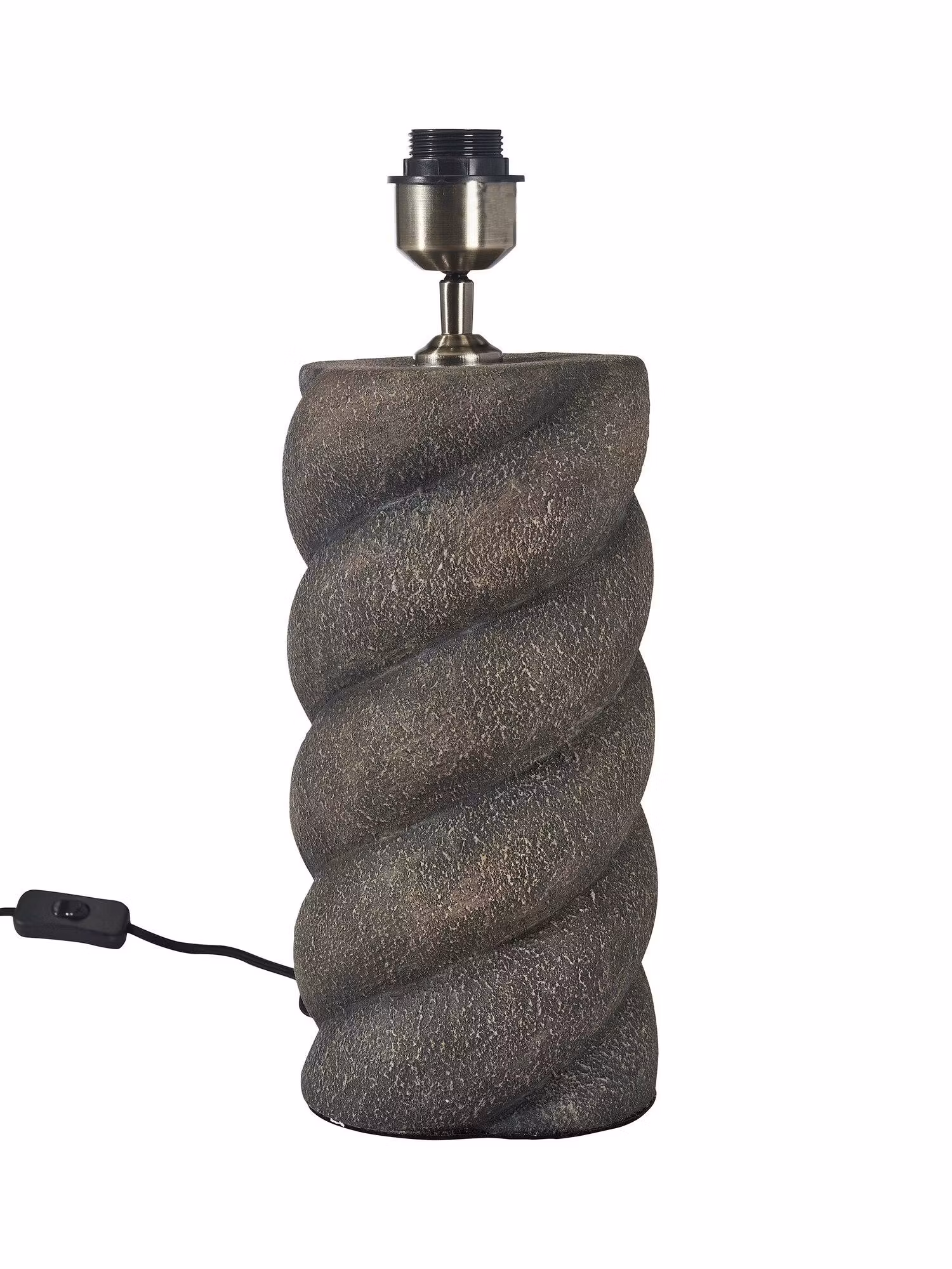 Spin Lampfot i keramik. Lampfoten har en tvinnad design i brunt med vintage finish. Då lampan är handgjord kan det förekomma nyans och storleksavvikelser. Svart textilsladd 2meter med strömbrytare ca 20cm från lampan. Höjd 41cm, bredd 16cm och djup 16cm. E27 sockel. Max 40W. IP20. Ljuskälla ingår ej. Passar med en skärm som är 30-42 cm i diameter.