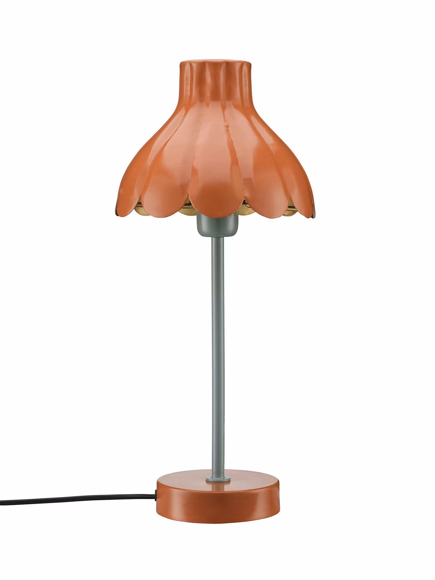 Bordslampa Wera i metall. Inspirerade av klockformade blommans elegans och den gröna stjälken har vi skapat denna lampa. Orange skärm och fot med en grön stam. En hommage till vår bordslampa Wells i lite mindre format med limiterad upplaga. Lampskärmen har en guldfärgad insida som sprider ett varmt och härligt sken, vilket skapar en mysig atmosfär. Lampans skärm är handgjord, vilket innebär att mindre avvikelser i höjd och bredd kan förekomma, vilket tillför en unik charm. Med sina feminina former och ljuvliga pastellfärger kommer Wera att pryda ditt hem på ett vackert sätt. Mått: Höjd 47 cm, Bredd 20 cm, Djup 20 cm. Lampan har en 1,5 m lång svart plastsladd med strömbrytare placerad ca 30 cm från lampan. E27sockel, max 25W och har en IP20-klassificering. Observera att ljuskälla ej ingår.