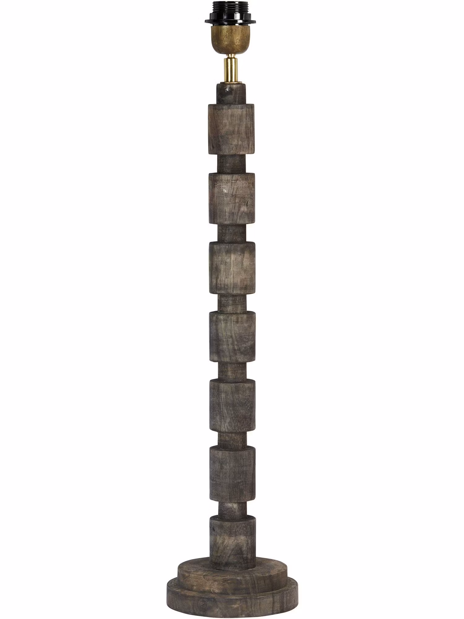 Lampfot William i gråfärgat trä. 120cm svart plastkabel med strömbrytare och väggkontakt. E27 lamphållare, max 40W. Höjd 58cm. Matcha med en rund skärm, ca 30cm i diameter.