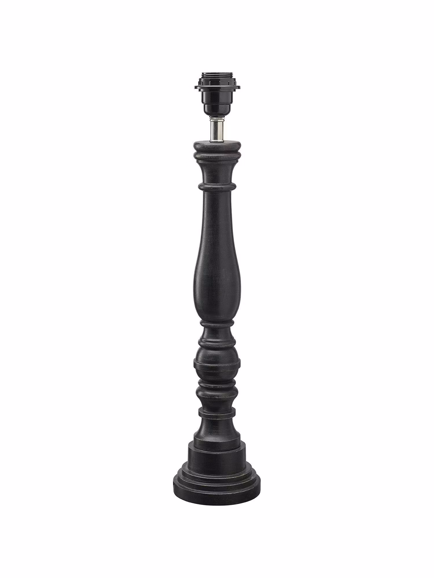 Lampfot Doris i svarvat mangoträ. Höjd 53cm. Diam 12cm. 1,4m svart plastsladd med strömbrytare. E27 lamphållare. Max 40W. IP20. Passar med en skärm diam. 20-25cm.