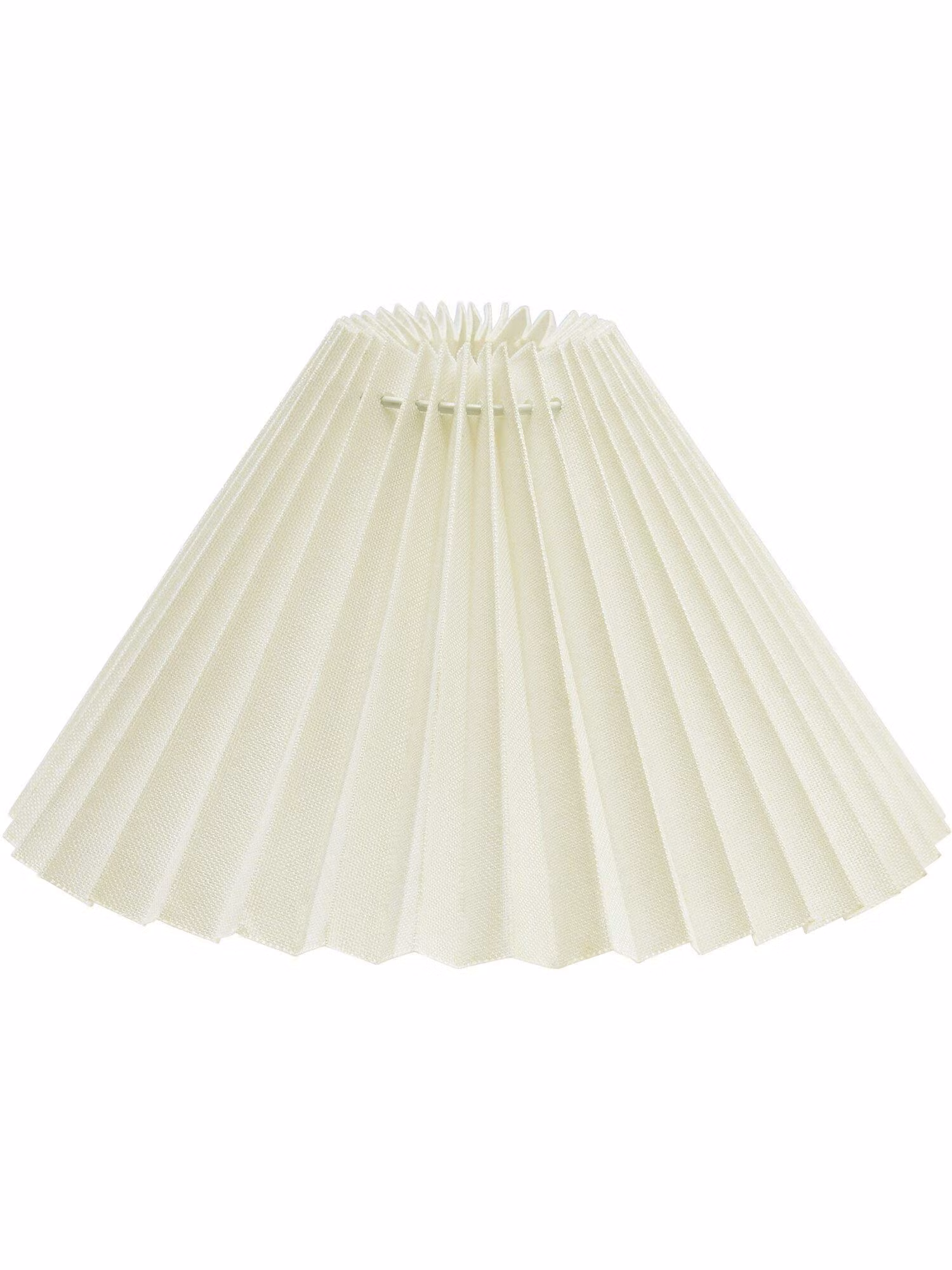 Astrid veckad skärm i tyg med linnestruktur. Skärmen har en hårt laminerad ljus insida som ger ett vackert sken. Mått från botten till fäste 3,5 cm. Skärmen har ett E27 fäste. Ljuskälla E27 köpes separat.