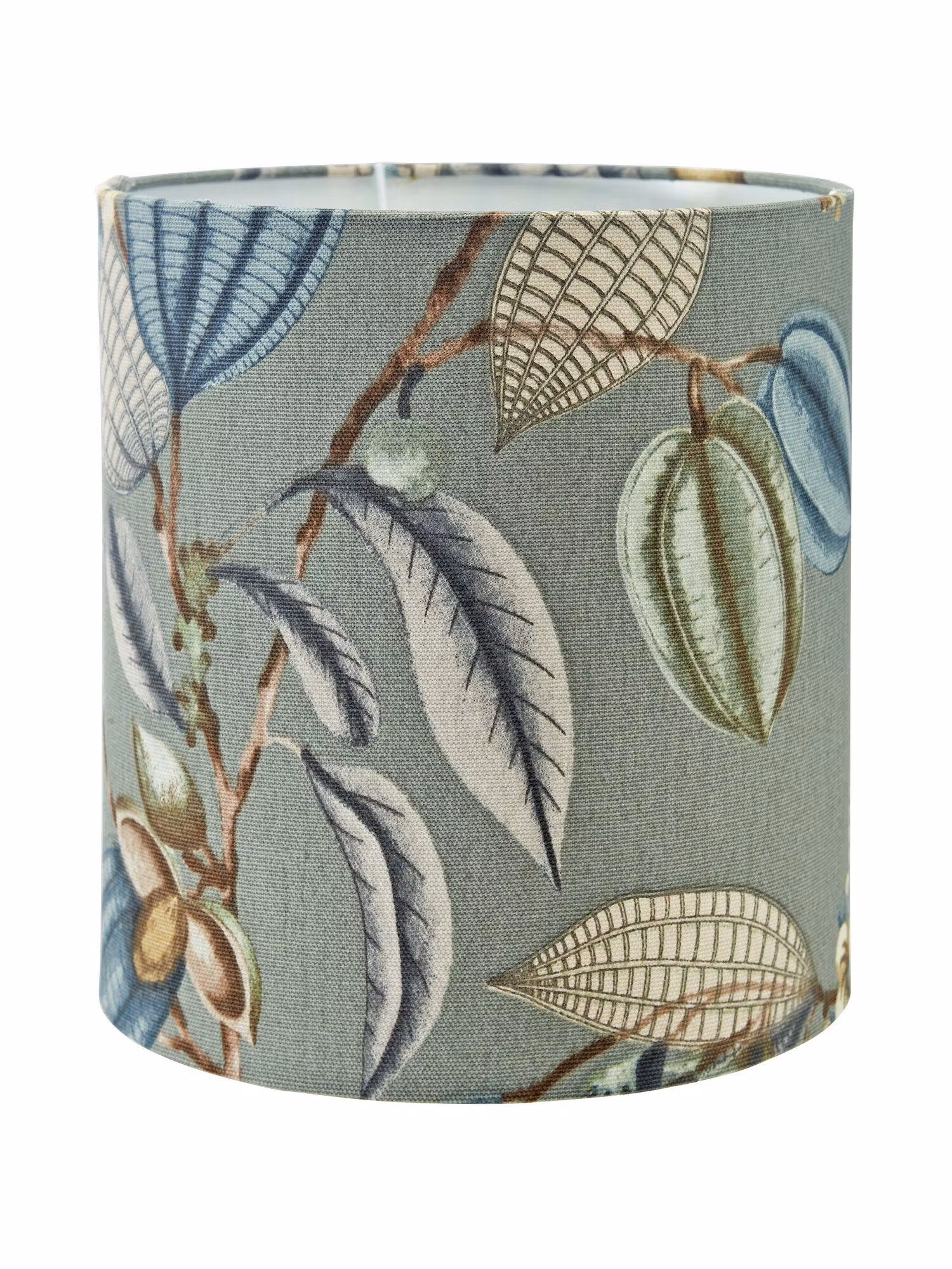 Celyn lampskärm i ett mönstrat bomullstyg. Skärmen har ett tryckt mönster med bladverk och har en ljus insida som gör att ljuset flödar fint. Skärmen är cylinderformad och har E27 ringfäste.