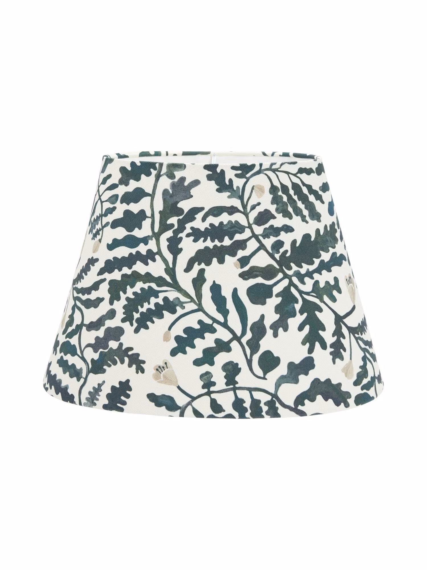 Oval Lampskärm i ett mönstrat bomullstyg från Svanefors med ljus botten. En slingrande bladslinga i modern tappning i gröna toner. Skapar ett fint blickfång i din inredning. Skärmen har en vit insida och rullade kanter för en mer modern känsla. Denna modell har ett klofäste som fästes direkt på ljuskällan. Klotformad ljuskälla köpes separat. Tyget är certifierad enligt STANDARD 100 by OEKO-TEX®. Certifieringen garanterar att produkten är testad och fri från ämnen som kan vara skadliga för hälsan och miljön.
