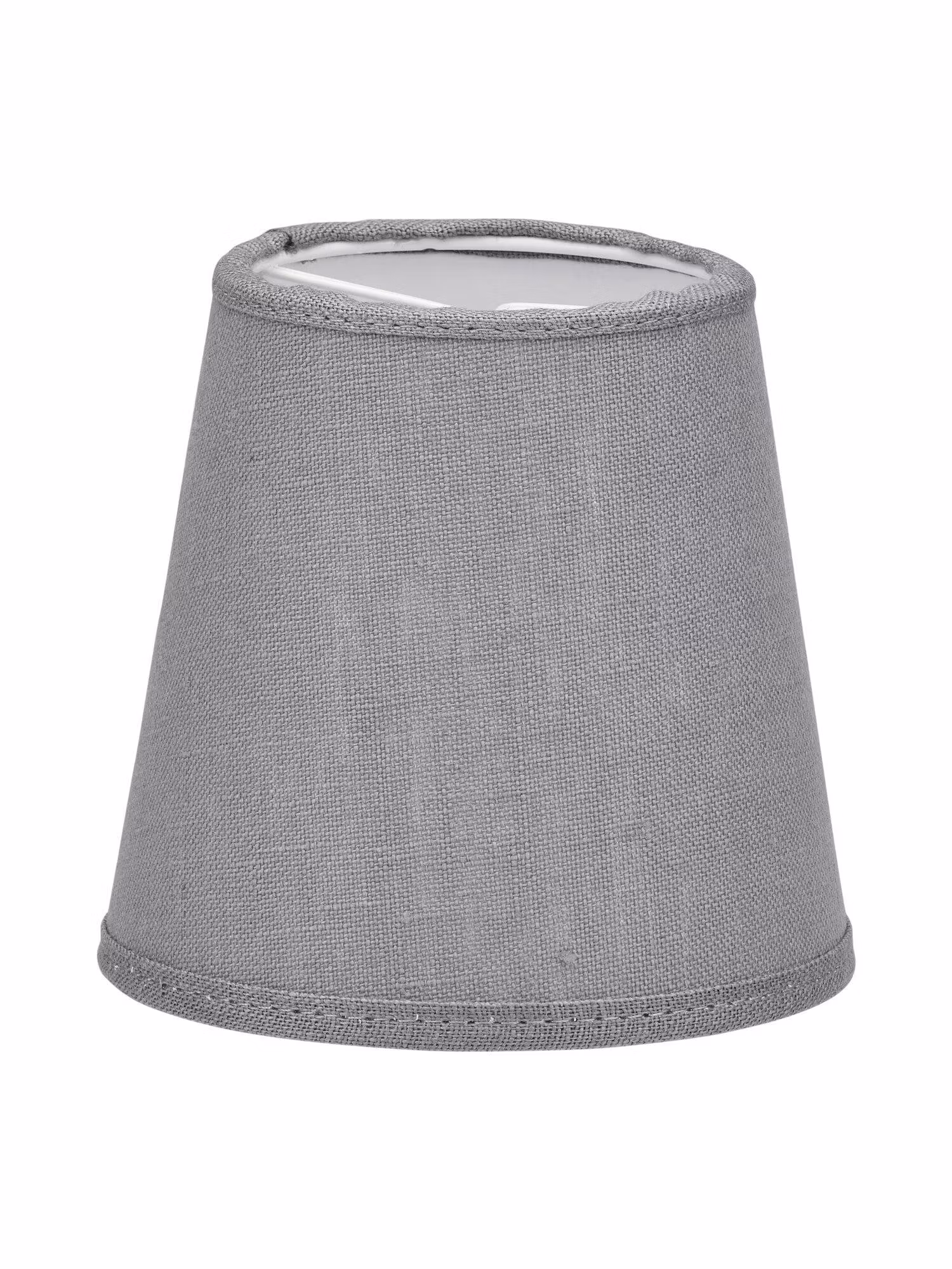 Queen rund lampskärm grå i linnetyg med ett klofäste. Linet gör att tyget får en vackert naturlig struktur och skapar ett lyxigt blickfång i din inredning. Skärmen har en vit insida och kantband i samma tyg som skärmen. Denna modell har ett klofäste för kronljus och fästs på ljuskällan, och passar till takkronor samt mindre lampfötter. Ljuskälla ingår ej. Tyget är certifierad enligt STANDARD 100 by OEKO-TEX®. Certifieringen garanterar att produkten är testad och fri från ämnen som kan vara skadliga för hälsan och miljön. Lampskärmen har måtten Diameter nedtill: 12cm, Höjd: 12cm.