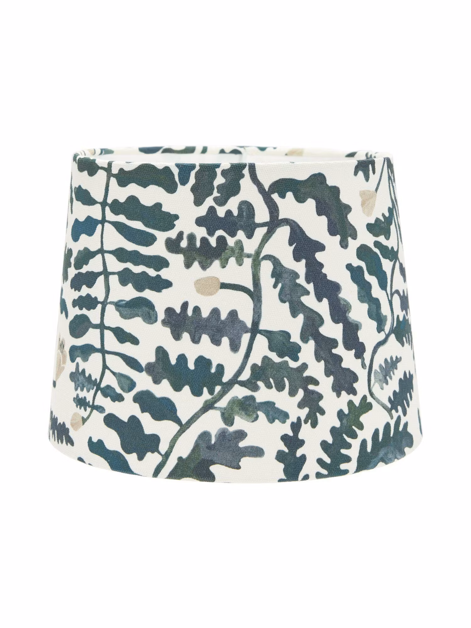 Sofia Lampskärm i ett mönstrat bomullstyg från Svanefors med ljus botten. En slingrande bladslinga i modern tappning i gröna toner. Skapar ett fint blickfång i din inredning. Skärmen har en vit insida och rullade kanter för en mer modern känsla. Formen är rund och lätt utställd nedtill. Lampskärmen har ett E27 ringfäste. Ljuskälla E27 köpes separat. Tyget är certifierad enligt STANDARD 100 by OEKO-TEX®. Certifieringen garanterar att produkten är testad och fri från ämnen som kan vara skadliga för hälsan och miljön.