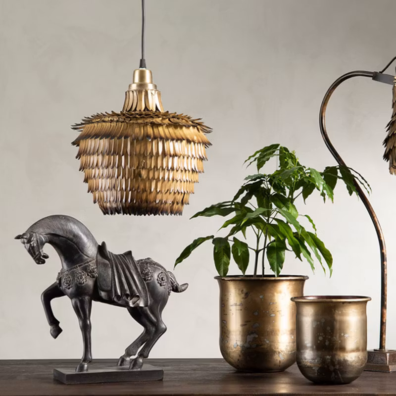 Överdådiga Taklampa Vilda antik mässing 30x18x32,5 cm är den perfekta lampan för att lyfta stilen i ditt hem. Den är tillverkad metall och har en antik mässing finish som ger ett exklusivt intryck. Lampan har en svart sladd på 150 cm lång. Med 1 x E27, max 40W, ger den ett ljust och skönt ljus som fyller rummet.