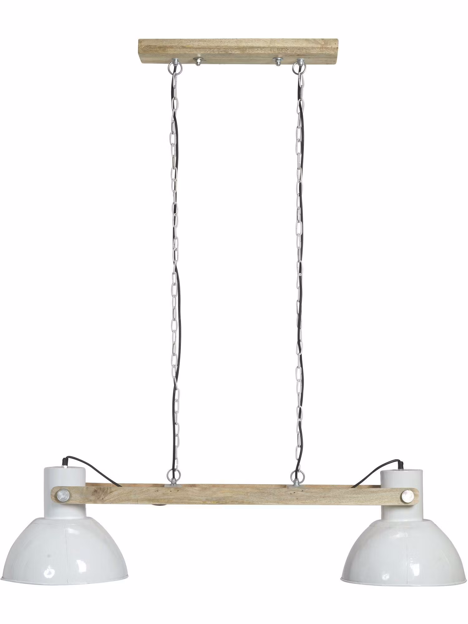 Taklampa Ashby Double ingår serien Ashby som har en industriell stil där trä och metall blandas. Lampan levereras med 100cm svart plastkabel, matchande kedja. Fast installation. Lampans bredd 110cm, höjd 30cm och djup 30cm. 2 x E27 lamphållare, max 2 x 25W. Ljuskällor och takkontakt ingår ej.