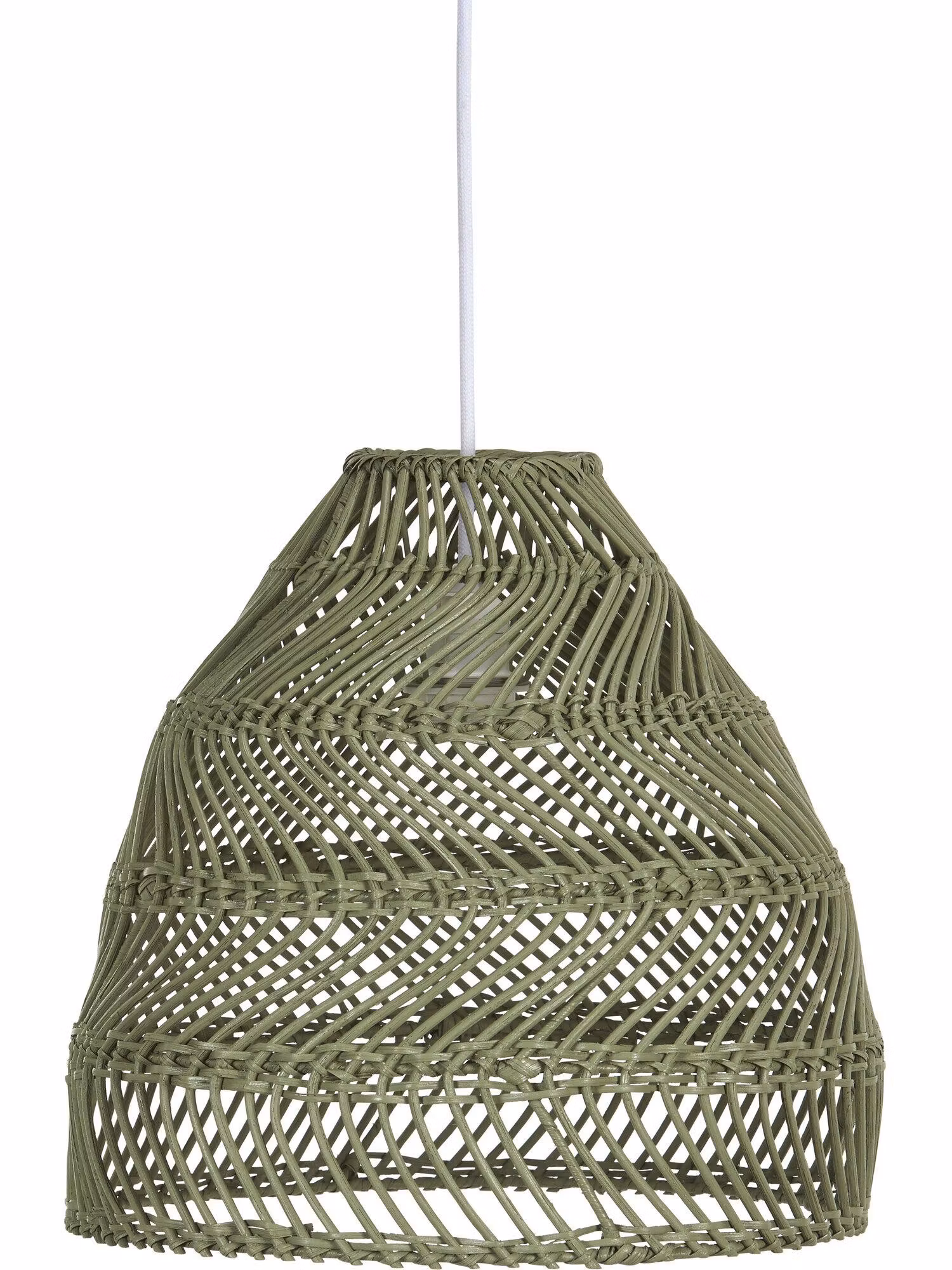 Maja takskärm i en vacker tvinnnad ljust grönfärgad rotting. Passar lika bra utomhus under tak, i växthus och uterum som inomhus. Levereras med vitt sladdställ, 1,2 m och takkopp. För utomhusbruk tänk då på att isället använda ett sladdställ för utomhusbruk (Flex out) och att väder och vind kan komma att påverka utseendet.