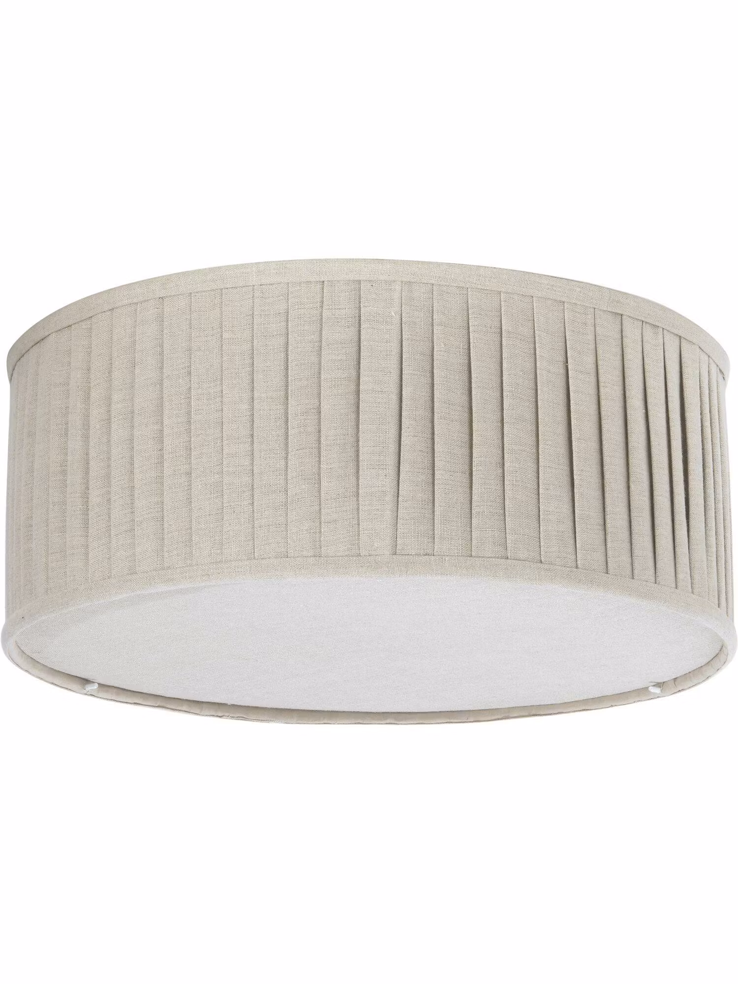 Fin och stilren plafond i ett härligt linnetyg. Handsydd med lagda veck. Taklampan kräver 3 stycken glödlampor med en E27 sockel, max 60W. Höjd 18cm, diameter 45cm. Ljuskällor och takkontakt ingår ej.