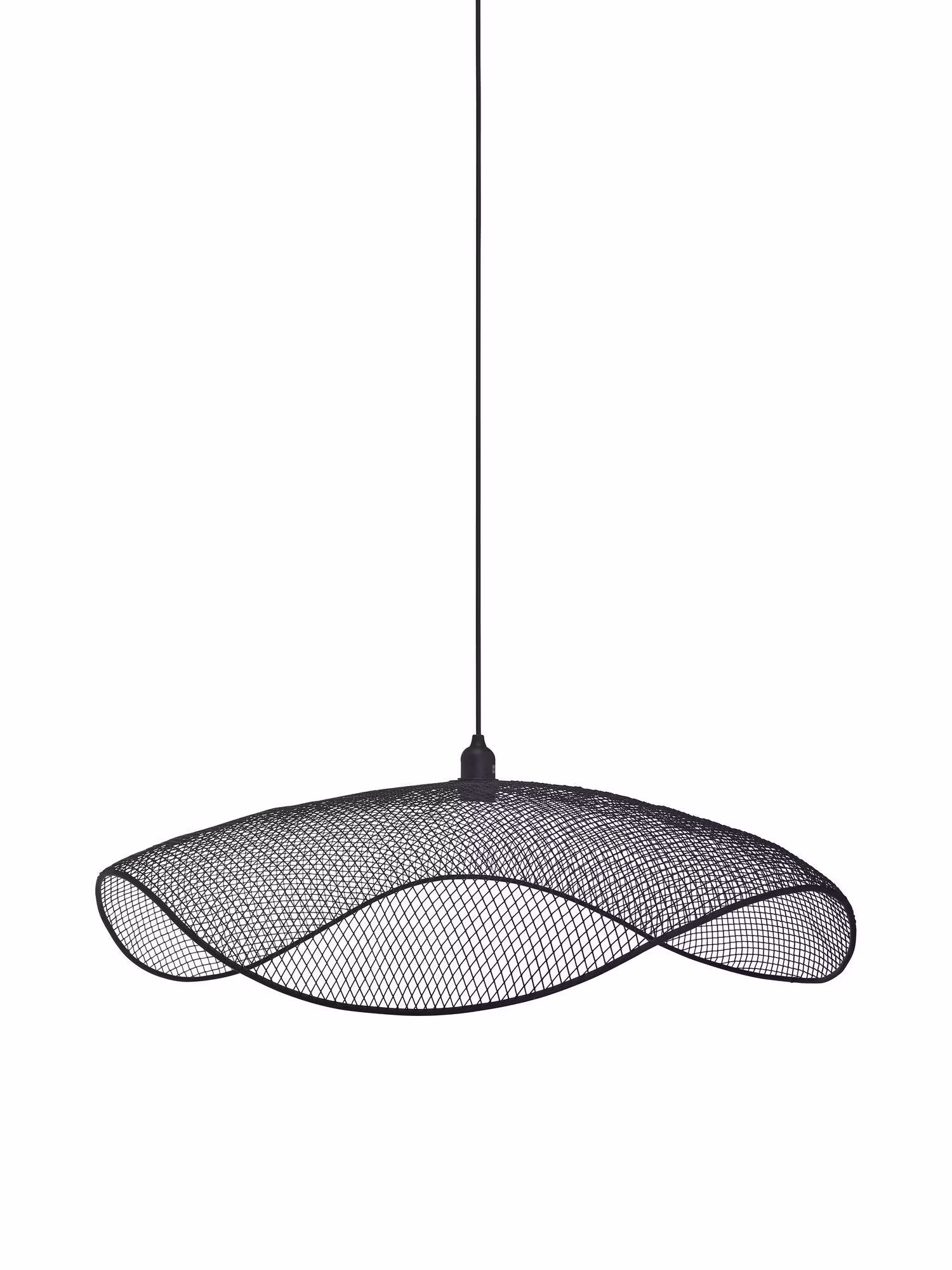 Taklampa Vivi är en vid bredbrättad och vågformad taklampa tillverkad av svart metallgaller. Snygg i många miljöer och ger fina reflektioner när den är tänd. Levereras med svart takupphäng i plast 1,2m med takkopp för krokupphäng. Diam 79cm, höjd 22cm. E27, max 40W. IP20. Takkontakt och ljuskälla ingår ej. Matchar med lampor från serien Grid.