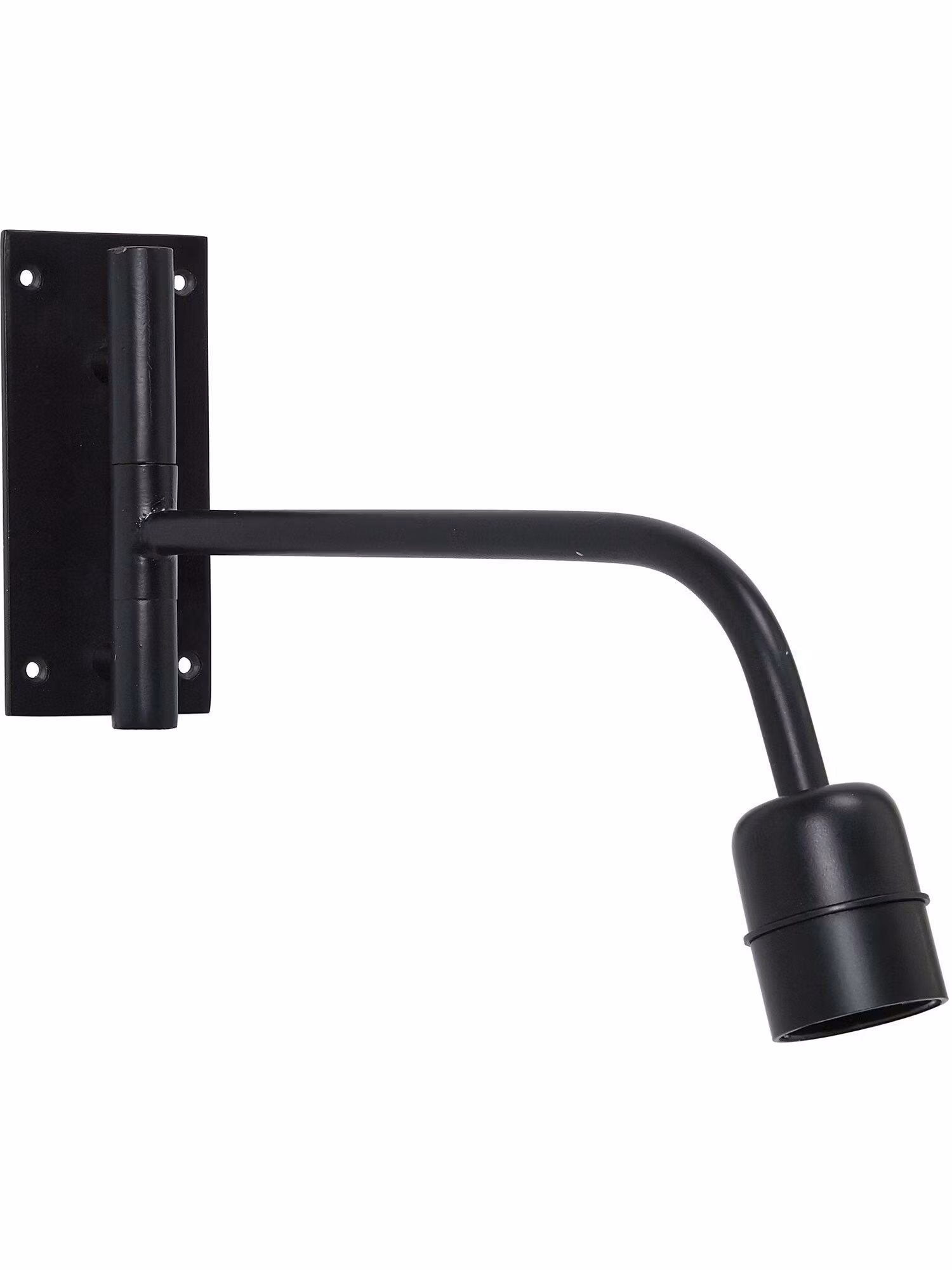 Vägglampa Base med svängbar arm i metall i en enkel och stilren design. Lampan har en skärmring i metall som gör att den går att kombinera med bara en snygg ljuskälla eller med en lampskärm med toppringsfäste. Ingår i serien Base. Matt svart finish. 1,6m lång svart textilsladd med strömbrytare ca 30cm från lampan. Väggfäste Höjd 14cm, bredd6,5cm och arm väggavstånd 34cm. E27 sockel. Max 40W. IP20. Ljuskälla ingår ej.