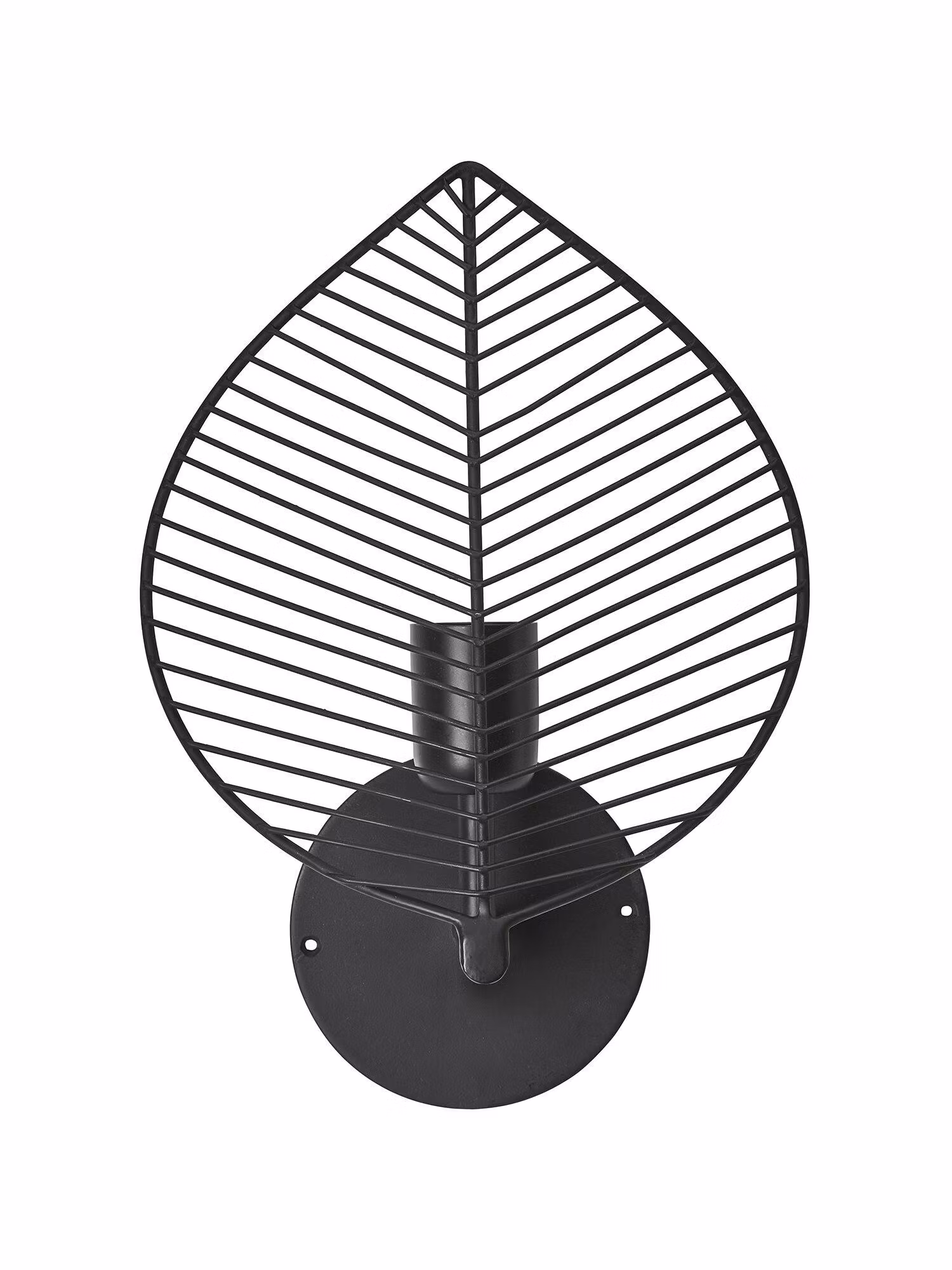 Vägglampa Elm av metall är en dekorativ vägglampa där vi hämtat inspiration från almlöv för att skapa ett vackert ljusspel. Matt svart finish. 1,8m svart textilsladd med strömbrytare. Höjd 33cm, bredd 22cm, väggavstånd 11cm. E27 sockel. Max 40W. IP20. Ljuskälla ingår ej.