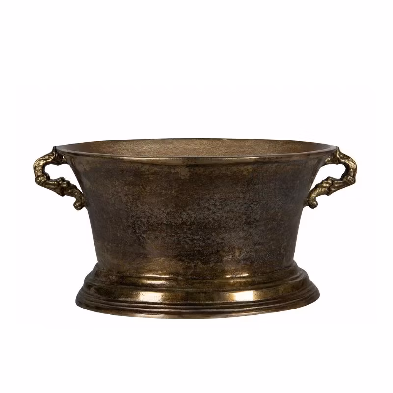 Letar du efter ett elegant sätt att hålla dina drycker kylda? Vår Iskylare i oval form, tillverkad av aluminium bränd mässing med måtten 50x35,5x22,5 cm, är det perfekta valet för dig som vill ha stil och funktion i ett. Denna iskylare kombinerar tidlös design med praktisk användning och passar utmärkt för både festliga tillställningar och vardaglig användning.