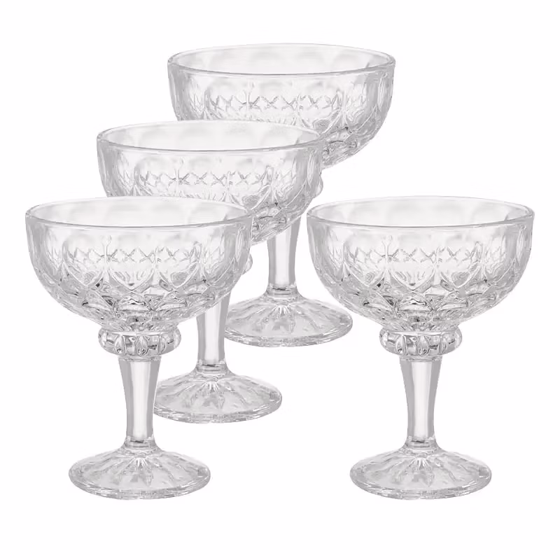 Vackra och klassiskt utformade dessertskålar med det lilla extra. Glanda dessertskålar kommer att förgylla såväl glass som puddingar och utgör ett vackert inslag på det dukade bordet.
