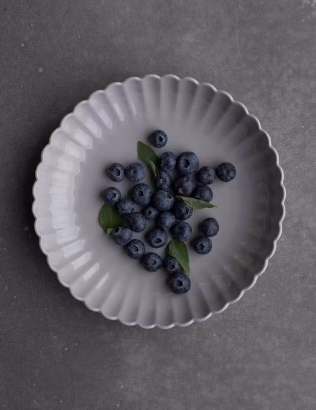 Flora-serien innehåller sex stilrena delar: mattallrik, assiett, djup mattallrik, två olika skålar och ett uppläggningsfat.