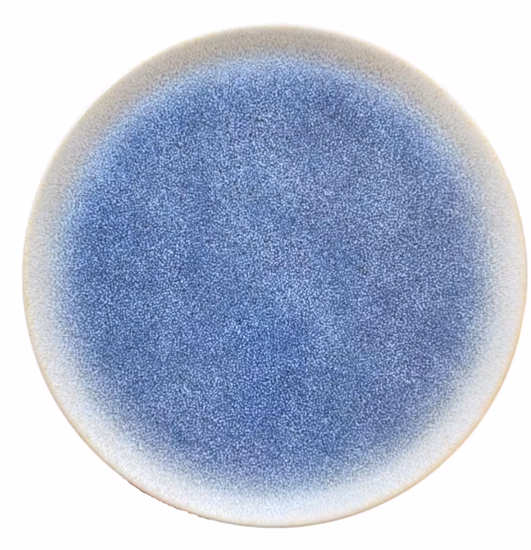 Pizzatallrik med digital print dekor. En snygg blå och beige oregelbunden dekor på vit botten och en struktur i glasyren. Perfekt storlek så pizzan får plats på tallriken.