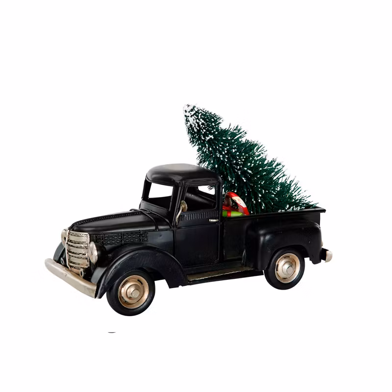 Juldekorationen är formad som en stilfull svart metall lastbil med en gran på flaket. Imponerande dekoration för julen. Denna pittoreska pick-up-lastbil med en gran är ett utmärkt tillskott till din julinredning. Mått: 26x11x16cm