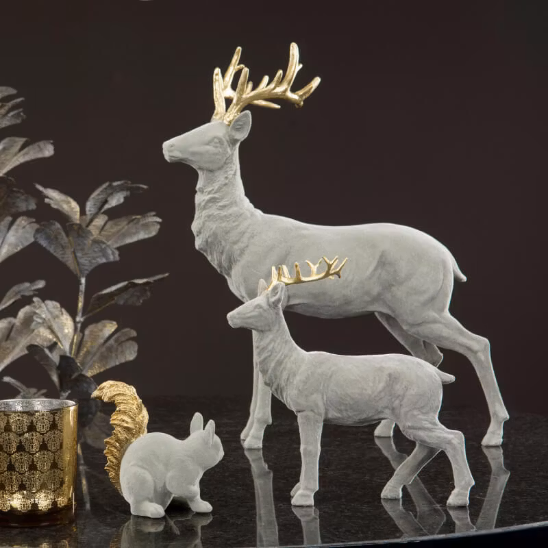 Hjort Grå Velvet Poly 43 cm är den perfekta juldekorationen för att pryda inför julen. Det grå sammetet och guldiga hornen ger en exklusiv känsla som passar in i vilket hem som helst. Den är tillverkad av högkvalitativa material som ger en långvarig användning. Måtten är 43x9x44 cm och är tillverkad av polyester.