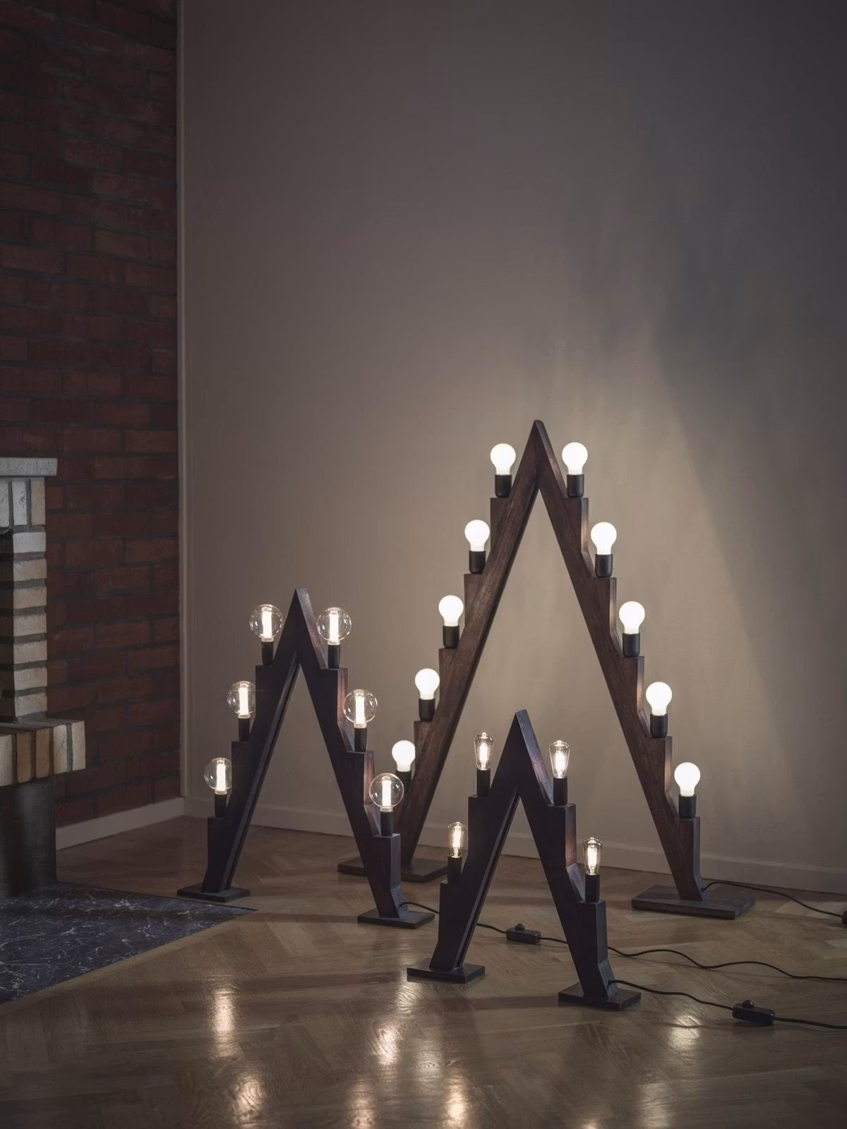 Adventsljusstake Torsby från PR Home. Ljusstaken är tillverkad i massivt Mangoträ som sedan betsas i en mörkbrunt ton. Dimmer som sitter på den textil beklädda sladden följer med som standard. Armaturen består av 10 st lampsocklar för E14 lampor som inte följer med. Ljusstaken finns i flera storlekar.