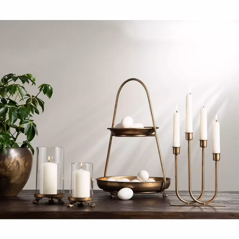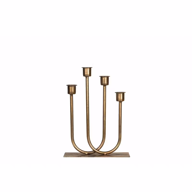 Denna eleganta ljusstake har fyra armar och en vacker guldbrun färg. Tillverkad av högkvalitativ metall. Perfekt för romantiska middagar eller som inredningsdetalj. Skapar en varm atmosfär. En utmärkt gåva till nära och kära.