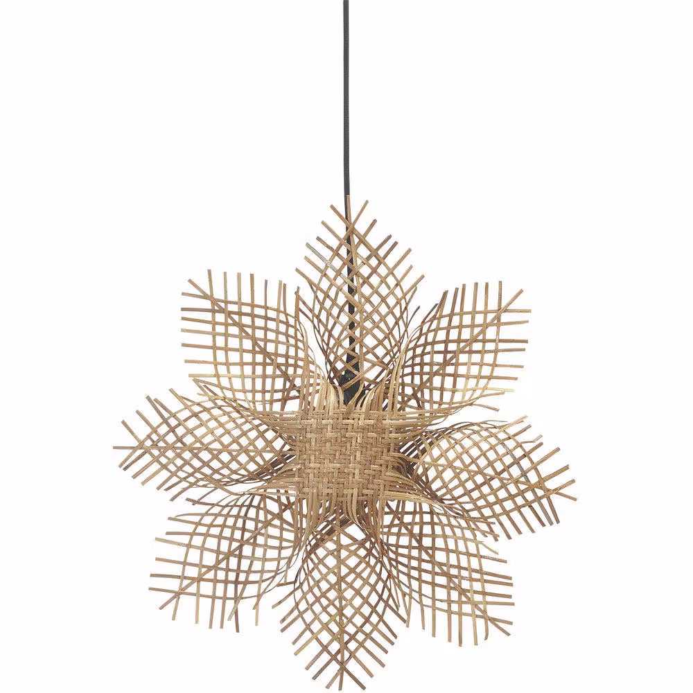Klassisk handgjord adventsstjärna i tunn rotting . Vissa nyans -och storleksskillnader kan förekomma då den är tillverkad för hand i ett naturmaterial. Stjärnan kommer med en 3,5 meter lång svart plastsladd med väggkontakt och E14 fattning.
