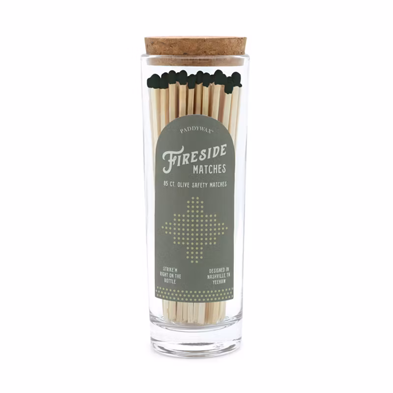 Tändstickor Olive grön 95 kr I lager. Lägg i korgen Dela Artikelnummer: ACC10EU Information Långa tändstickor i en vacker glasburk med korklock, från Paddywax!Tändsticksplån finns på baksidan av burken.