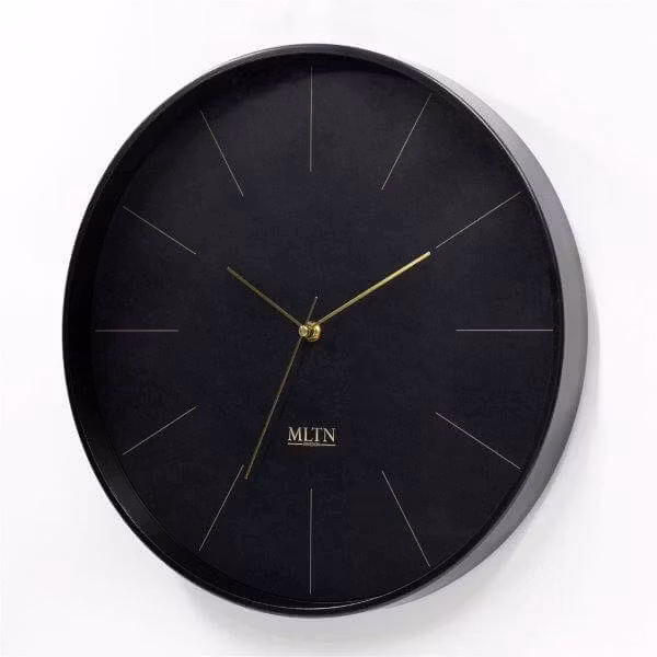 Klocka MLTN - LINE - Svart/Guld, Metallram, Guldfärgad visare i aluminium, Flat Glaslins, Ljudlöst urverk, Svepande Sekundvisare, Presentbox, AA batteri ej inkluderat.