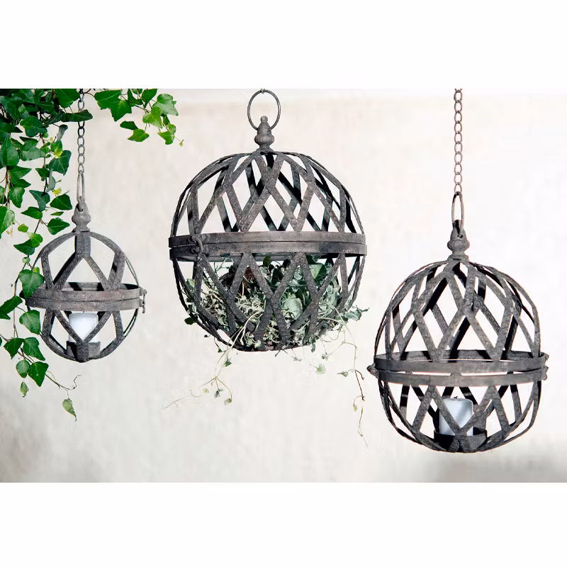 Vår ljusklot kedja hängande metall i 3 set är ett fantastiskt sätt att förhöja din inredning. Dessa tre klot har olika storlekar som Ø26x33/H90cm, Ø21x27cm/H82cm och Ø15x24/74cm. Ljuskloten är perfekta för att skapa ett inbjudande rum och är utmärkta för att skapa ett intressant ljusmönster. Dessa klot kan användas både inomhus och utomhus för att skapa en stilfull och elegant atmosfär. Färgerna är mångsidiga och passar in i alla typer av hem.