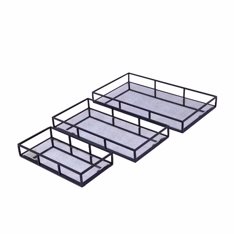 Denna lilla vintage bricka är svart och har måtten H5,5xW25xL45 cm. Den har en tidlös charm och kan vara ett perfekt tillskott till ditt hem. Servera eller använd den som dekoration i ditt hem. Den svarta metalltråden ramen tillsammans med det eleganta glaset ger en sofistikerad touch.. Mått: H5,5xW25xL45 cm