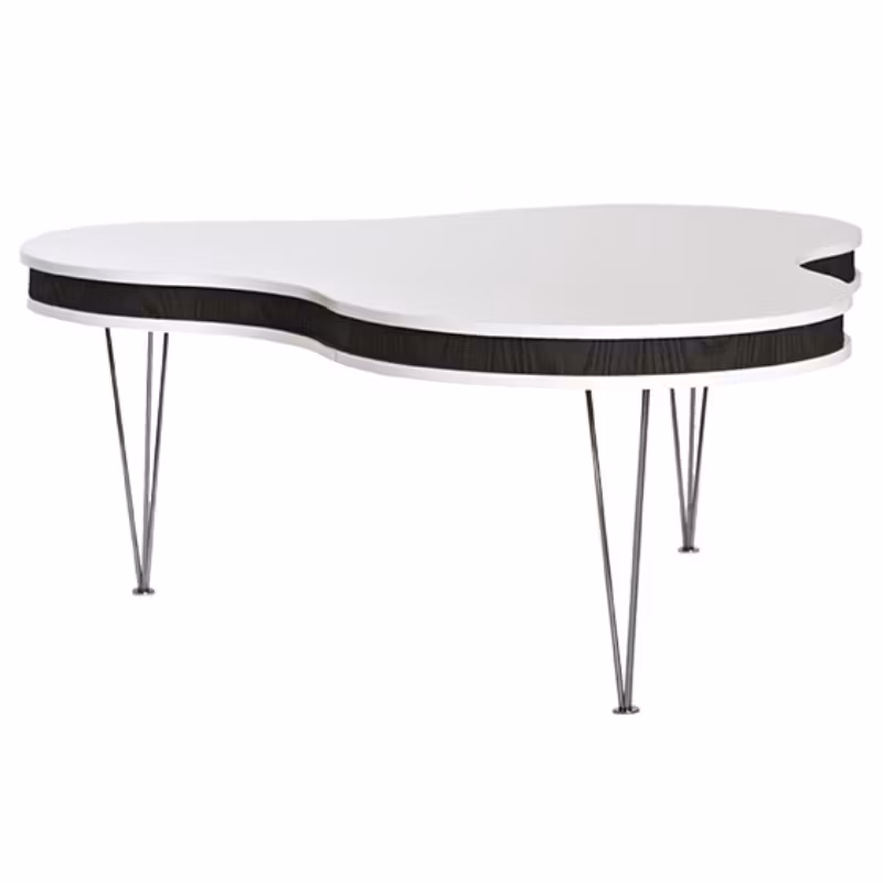 Hugo Soffbord Treklöver är ett elegant och modernt soffbord som kombinerar stilrena färger med en unik design. Bordet är tillverkat i MDF och fanér, vilket ger en hållbar och slät yta, och stöds av robusta kromben som tillför en modern touch till dess estetik.