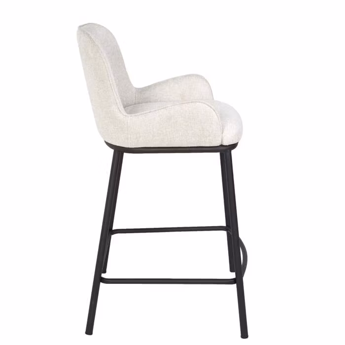 Det är en stol som är både estetiskt tilltalande och funktionell. Den har en svart ram runt omkring som ger stolen en extra touch av elegans. Själva sittytan är klädd i ett mjukt och härligt tyg, vilket ger en bekväm sittupplevelse. Stolen står på svarta sandblästrade metallben, vilket ger den en modern och stilren känsla. Det finns också en version av stolen i barstolsformat för dem som föredrar högre sittplatser. Sammanfattningsvis är detta en snygg, bekväm och modern stol som skulle passa bra i många olika typer av inredningar.