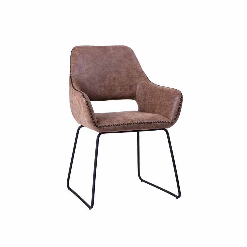 Stol Angel i brunt konstläder har en modern och trendig design. Matstolen är tillverkad av slitstarkt PU med svart pulverlackerad ram.