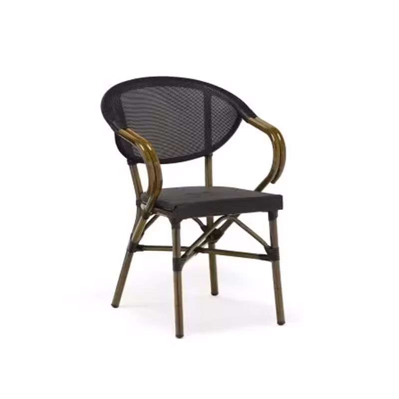 Upptäck Utomhus stol Paris II svart: En stilren och klassisk design som är lätt att rengöra och tålig mot varierande väderförhållanden. Tillverkad i kraftig aluminium och bambu-look, den här stiliga utomhusstolen är speciellt framtagen för intensiv användning och kan användas året om, oavsett väder. Fås i tre olika färger – välj din favorit och ta utomhusstolens Paris II svart med dig hem!
