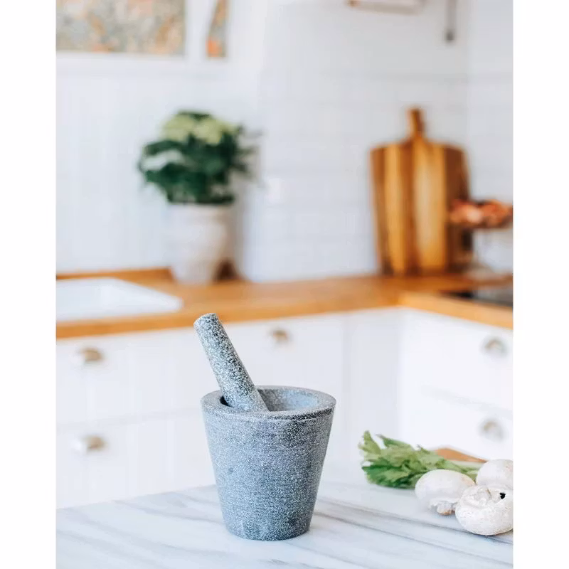 Boda Mortel är en elegant mortel tillverkad i högkvalitativ granit som gör det enkelt att stöta både torkade och färska kryddor för att förbättra dina maträtter. Morteln har en stilren design och erbjuder stabilitet och hållbarhet i köket. Graniten kan ha naturliga färgskiftningar som gör varje produkt unik, vilket kan innebära att den ser något annorlunda ut jämfört med produktbilden.
