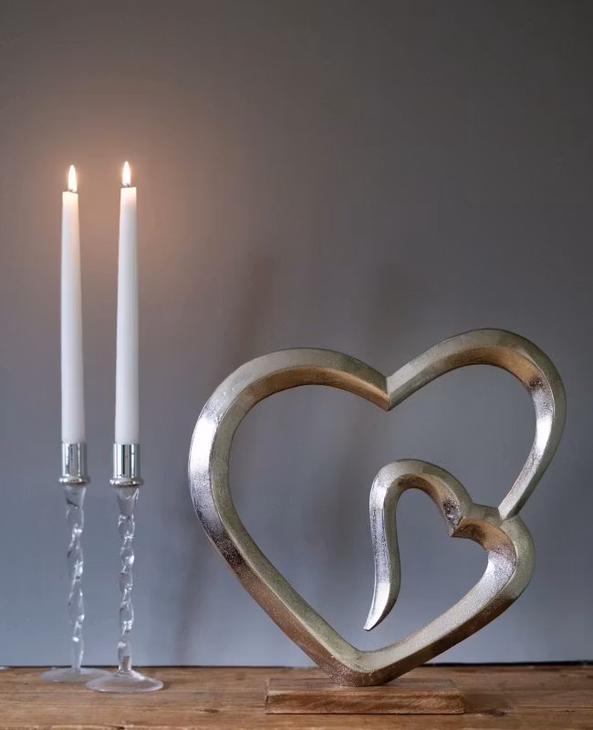 Helia Hjärta är en vacker hjärtformad inredningsdetalj på träfot som sprider kärlek och värme i ditt hem. Helia består av ett större och ett mindre hjärta, och passar perfekt som en dekorativ prydnad eller som en omtänksam present.
